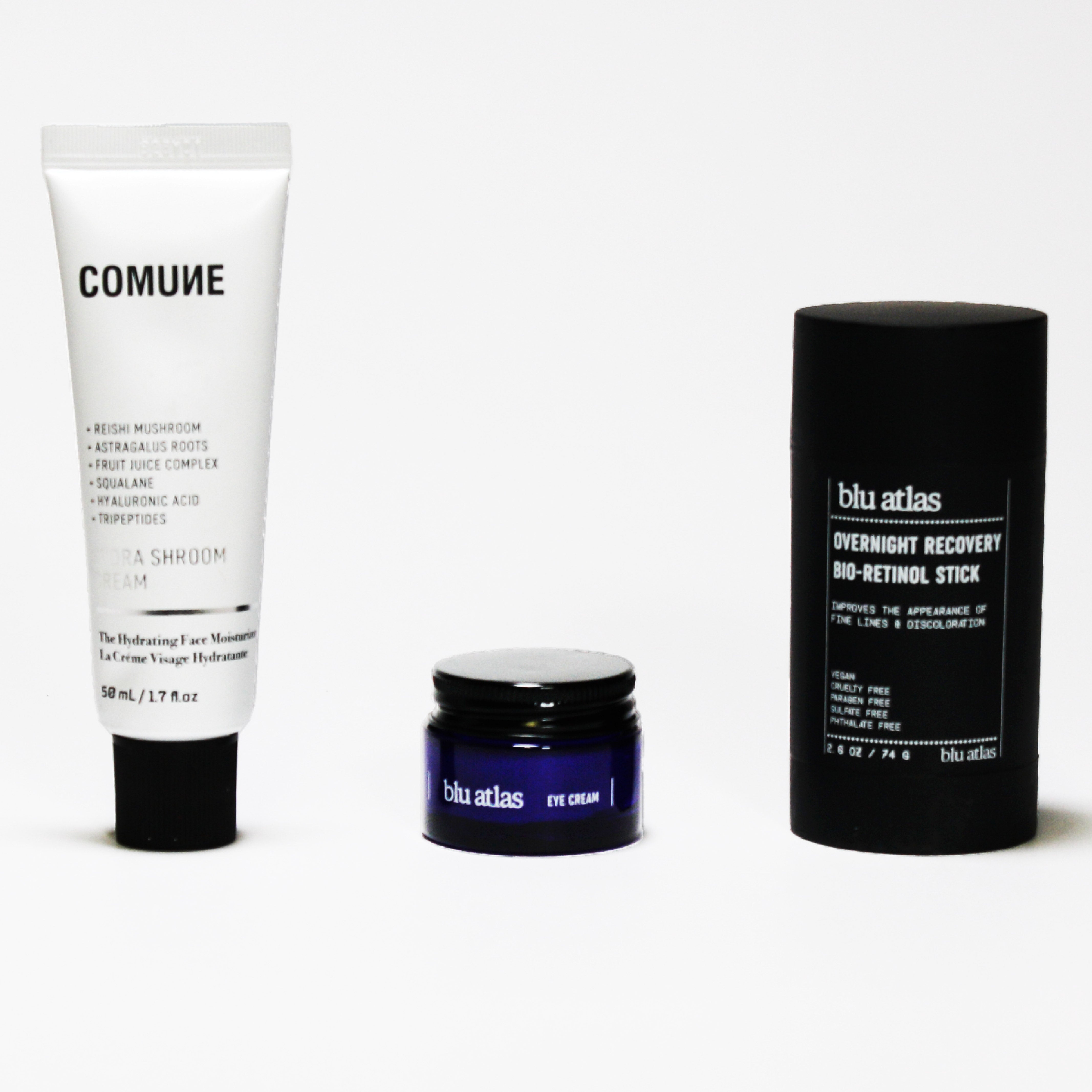 Blu Atlas Brightening Eye Cream (AM/PM) → Dark circles and fine lines don’t stand a chance. This cream hydrates, firms, and brightens so your eyes look energized—even when you’re not.