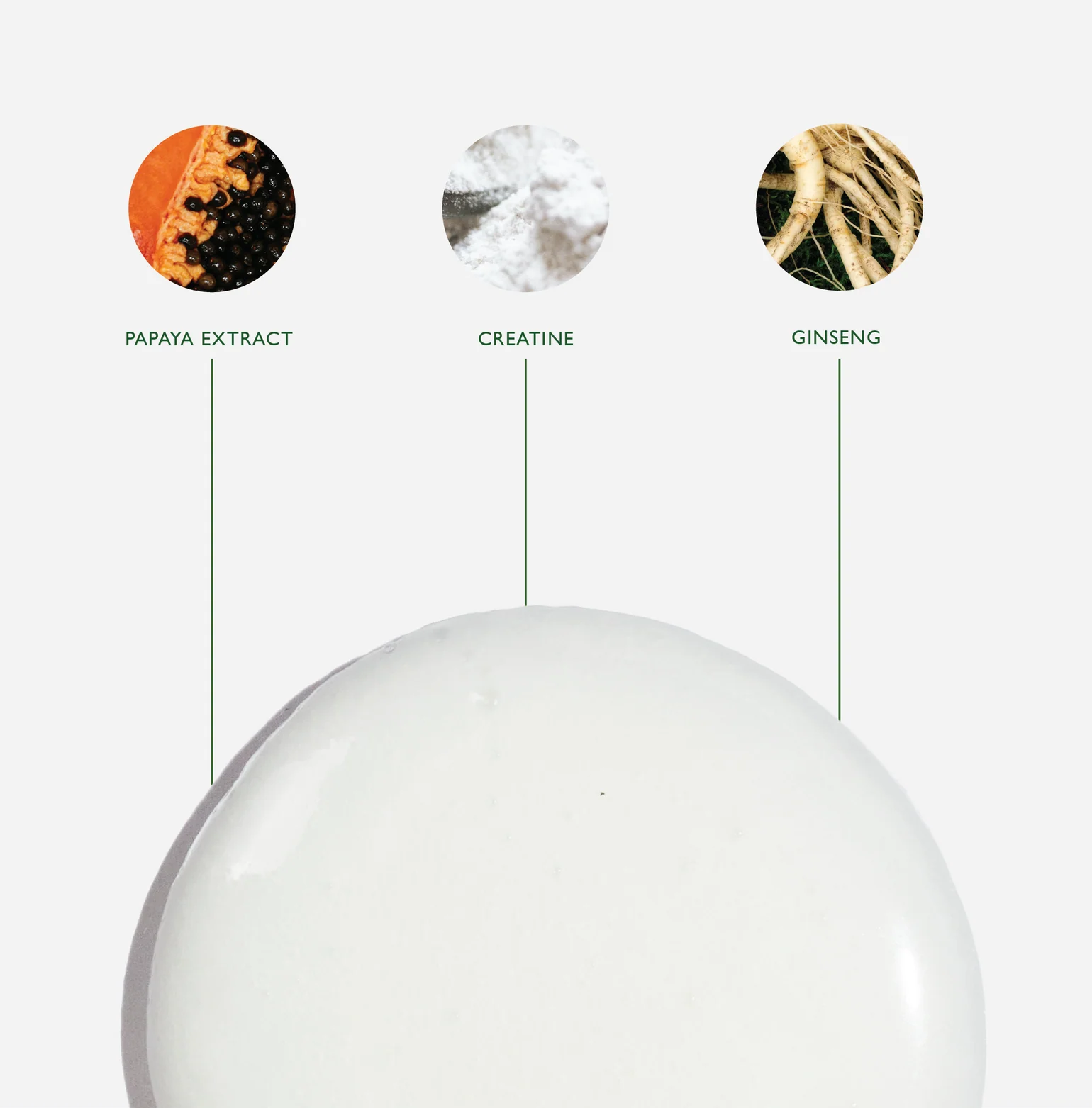 Aqua (Water), Sodium C14-16 Olefin Sulfonate, Cocamidopropyl Betaine, Parfum (Fragrance), Coco-Glucoside, PEG-40 Hydrogenated Castor Oil, Acrylates/Palmeth-25 Acrylate Copolymer, Phenoxyethanol, Benzyl Benzoate, Hydroxypropyl Guar Hydroxypropyltrimonium Chloride, Linalool, Limonene, Sodium Hydroxide, Chlorphenesin, Disodium EDTA, Citral, Glycerin, Butylene Glycol, Creatine, Ethylhexylglycerin, Panax Ginseng Root Extract, Eucalyptus Globulus Leaf Oil, Tocopheryl Acetate, Lactobacillus/Arundinaria Gigantea Ferment Filtrate, Camellia Sinensis Leaf Extract, Caffeine, Carica Papaya (Papaya) Fruit Extract, Leuconostoc/Radish Root Ferment Filtrate, Potassium Sorbate, Sorbic Acid