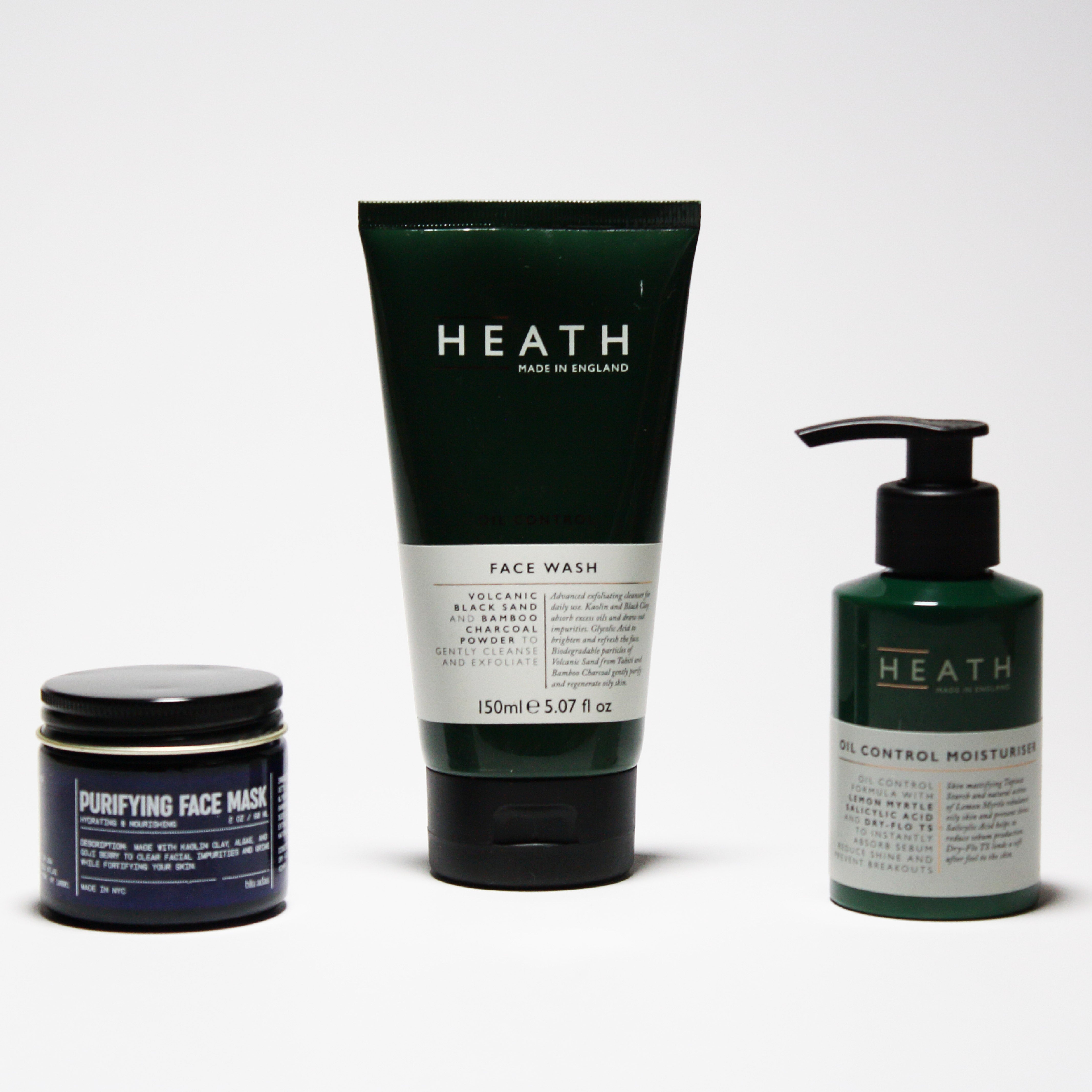 Heath Oil Control Face Wash (AM/PM) → Black sand and kaolin clay gently exfoliate and lift away impurities, leaving skin looking refreshed and balanced with a soft, non-shiny finish.